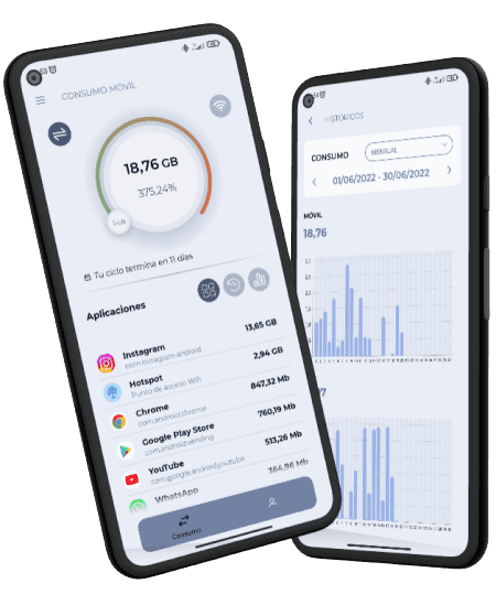 - El histórico del consumo de datos te permitirá tener un control de tus datos consumidos tanto semanal como mensualmente.